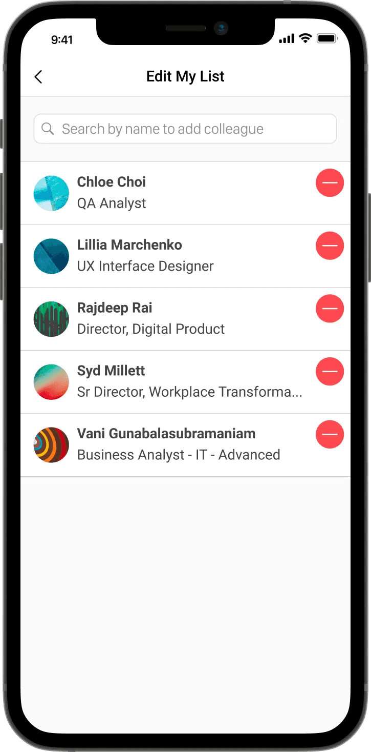 Employees should be able to view someone’s picture, job title at RBC and name before adding them to their list. This is so they don’t add someone with a duplicate name and job title.