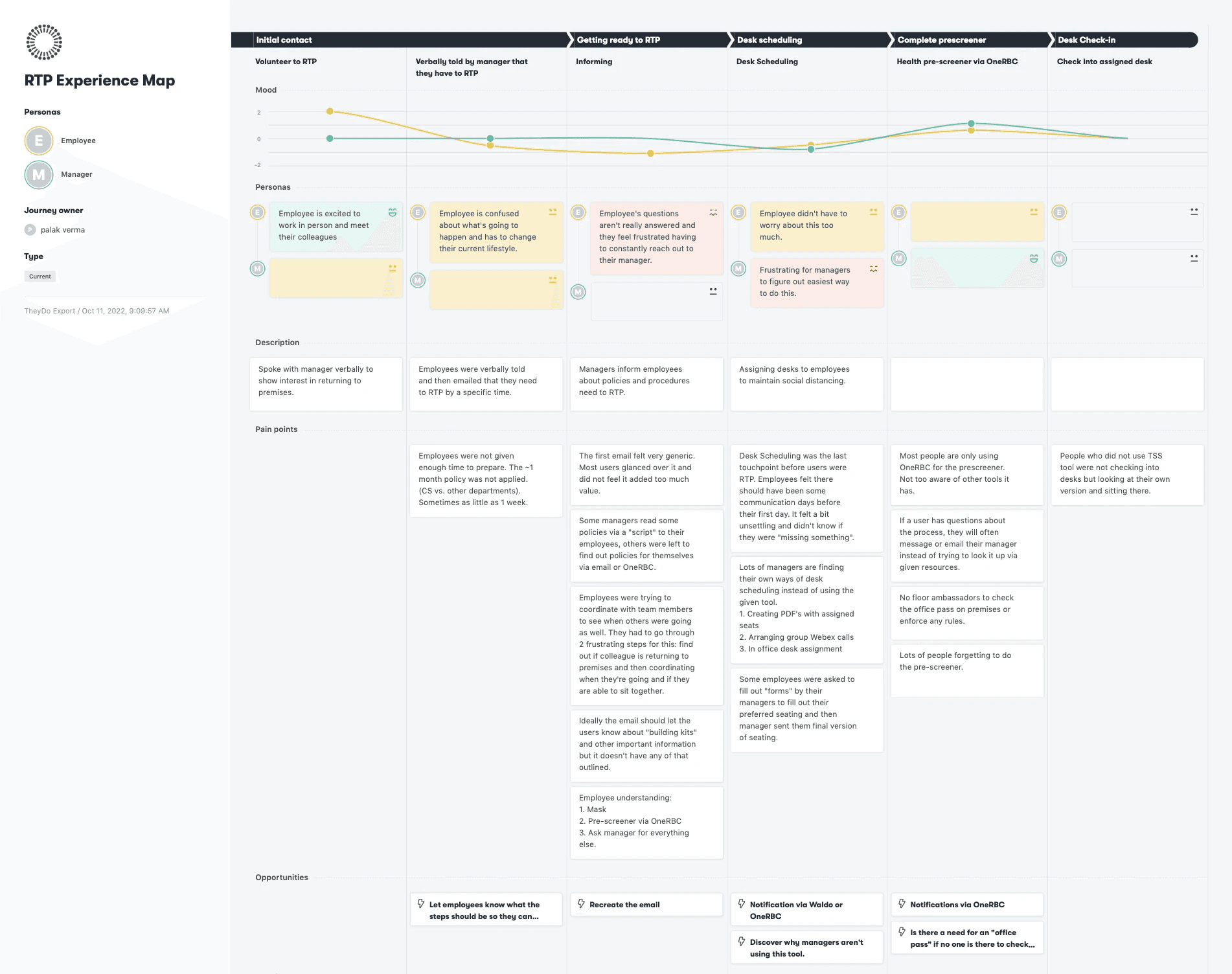 I created a user journey that aims to understand the experience of all employees returning to premises. This journey kept changing over time as official restrictions, company procedures and employee behaviour changed during the pandemic.